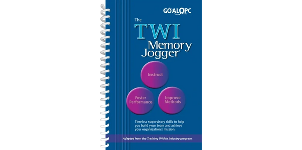 The TWI Memory Jogger is a "how-to" guide to using the Training Within Industry methods. This guide provides a quick reference for people who have already been through in a TWI program, and will someone new to the skills get started.